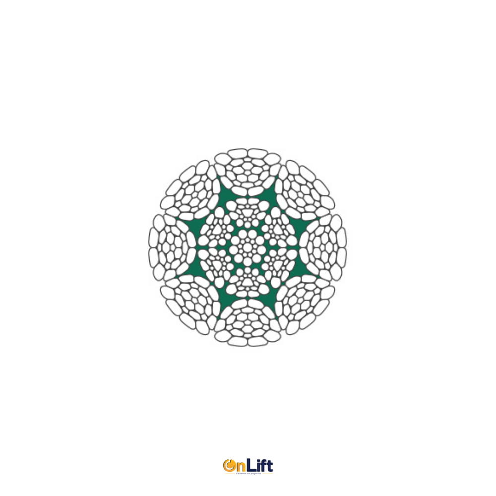 Número de categoría de la cuerda (RCN) 09 según ISO 4309 tendido ordinario. Relleno de plástico. Cordones exteriores compactados. Cable interior prensado. No debe utilizarse con eslabón giratorio.